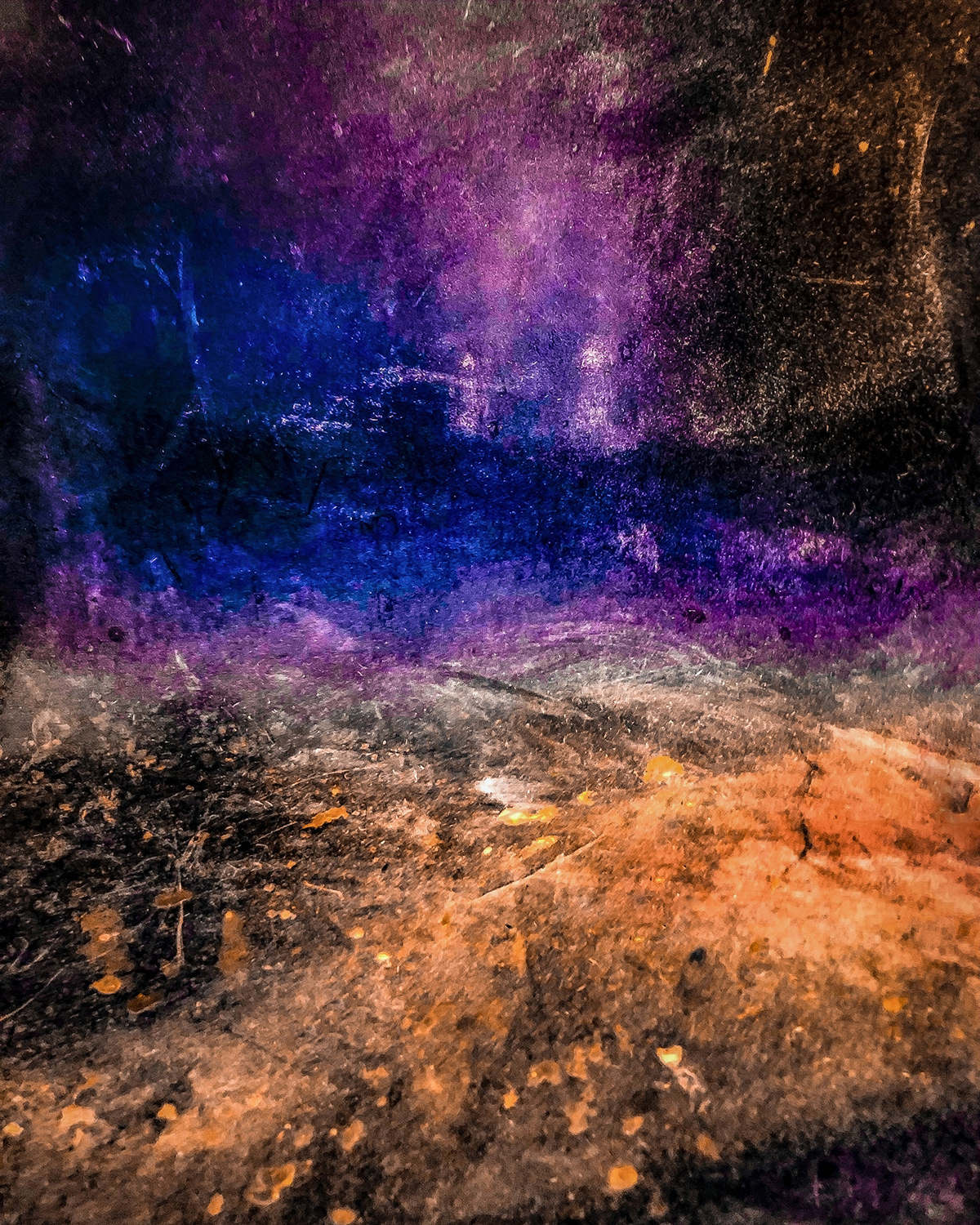 As the viewer becomes overwhelmed in the piece, I wanted the viewer to be able to navigate their eyes in the piece with slight bits of color. So the viewer is left with a visual of the outpost of our world.